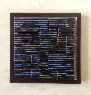 パウル・クレーのモチーフにある格子模様の絵画のように、木片に着色してランダムに並べてみました。